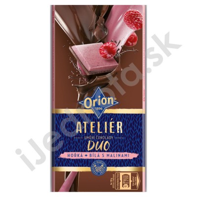 ORION Ateliér - Horká čokoláda a biela čokoláda s chuťou malín Objavte Orion Ateliér s intenzívnou chuťou horkej čokolády v spojení s bielou čokoládou jemne ochutenou lahodnými malinami. Táto neodolateľná kombinácia vytvára dokonale vyvážený chuťový zážitok.Značka